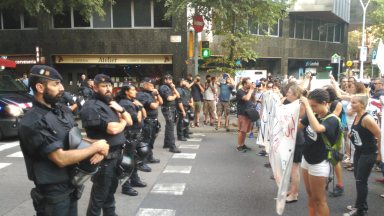 La manifestació ha intentat arribar fins la Delegació del Govern, on s'estava duent a terme la reunió entre el president de la Generalitat, Quim Torra, i la delegada del Govern espanyol, Teresa Cunillera, però s'han trobat un cordó de Mossos d'Esquadra a l'accés per Mallorca barrant el pas. Uns pocs assistents han llançat als policies ous de pintura. El grup de suport ha desconvocat després de llegir el manifest a la cruïlla entre Gran Via de les Corts Catalanes i el Passeig de Gràcia. Un cop s'havia dissipat el gruix de gent, els Mossos d'Esquadra han identificat als organitzadors de la marxa, qui ho han denunciat per les xarxes socials.