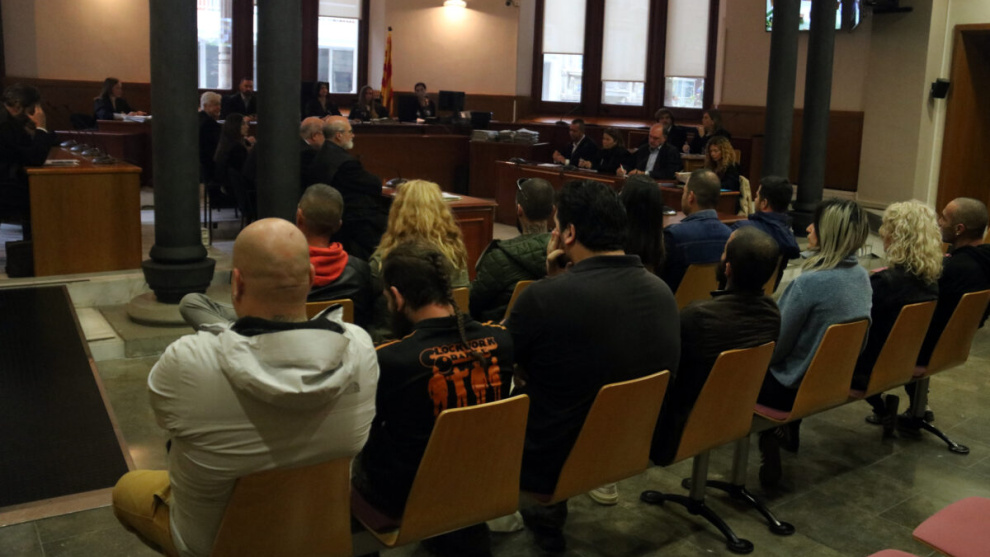 La vista oral ha començat tard perquè un dels acusats es trobava malament i no s'ha despertat a temps: la sessió ha començat sense ell i al final ha arribat a temps per acceptar els fets i la pena. Molts dels acusats duien símbols extremistes tatuats i un d'ell ha estat a punt de no acceptar els fets i les penes. Un quinzè acusat està fugat de la justícia. L'Ajuntament de Barcelona era acusació popular i ha acceptat també l'acord entre fiscalia i defenses.