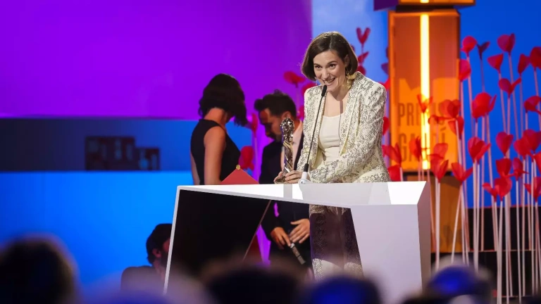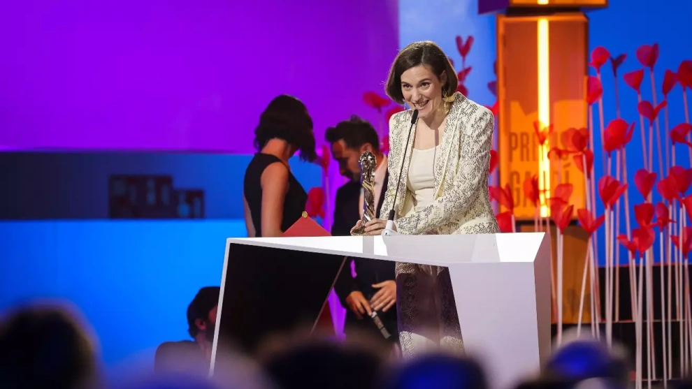 Carla Simón en el moment de recollir el Premi Gaudí a la millor direcció per 'Alcarràs'. Jordi Borràs / ACN
