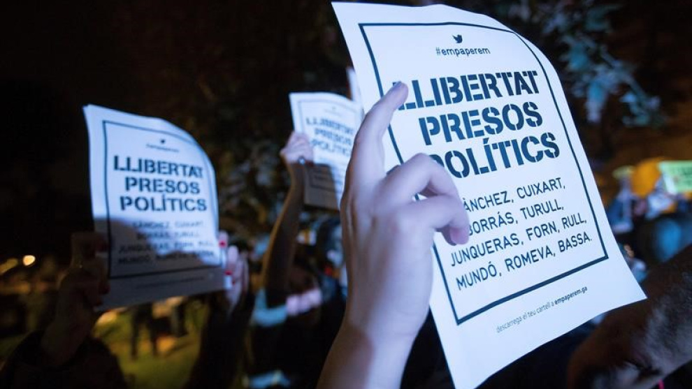 "El Govern de Catalunya ingressa avui a la presó en compliment d’un procés judicial en què se l’acusa de rebel·lió arran de la proclamació de la República. Aquest és un fet demolidor que ens remet a d’altres moments dramàtics de la nostra història. A més d’aquest empresonament preventiu del vicepresident, set consellers i un exconseller, la resta del Govern i el president Carles Puigdemont són a Bèlgica, pendents d’una ordre de detenció internacional. Per completar aquest escenari, la setmana que ve hauran de prestar declaració la presidenta del Parlament i cinc membres de la mesa, afectats també per les mateixes acusacions. Les principals autoritats del país i els dirigents de dues grans organitzacions civils han estat objecte d’unes mesures repressives que obren un fosc panorama.
