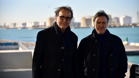 El comissari de Cultura de l'Ajuntament de Barcelona, Joan Subirats, amb el comissari del BCN Negra, Carlos Zanón, en la presentació del festival. EDU PEDROCCHI