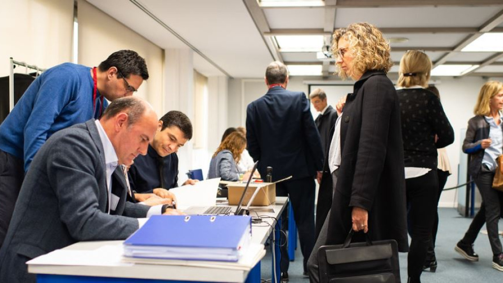 Moment de les votacions per l'elecció del Ple de la Cambra de Comerç de Barcelona. Cambra de Comerç