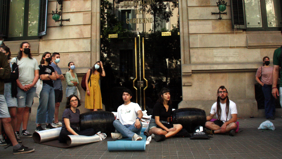S'han concentrat davant la delegació del Govern espanyol a Catalunya, on quatre d'ells s'han encadenat. Assenyalen l'Estat com l'"autèntic culpable" de l'actual situació del català i denuncien que la nova llei s'ha "fet a mida" per "desarticular" el moviment estudiantil