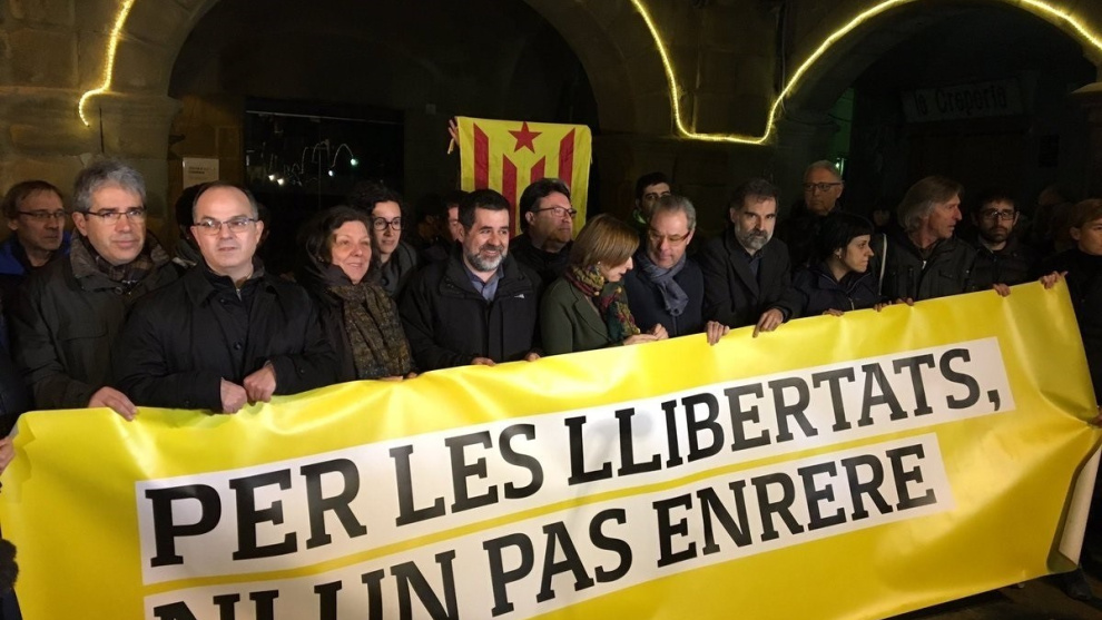 Forcadell, Homs y otros dirigentes soberanistas se concentran en apoyo al concejal de la CUP Joan Coma. Europa Press