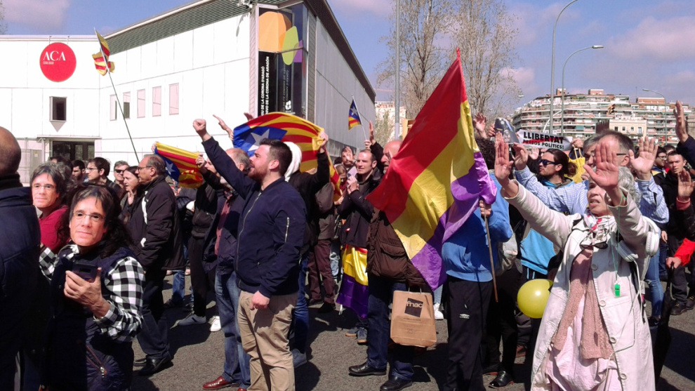 La concentració, molt menys concorreguda que la del 25 febrer –que va caure en diumenge–, ha reunit sobretot gent gran i estudiants, i ha servit perquè s'hi coregessin proclames a favor de l'alliberament dels presos, els ja clàssics "els carrers sempre seran nostres" i "Puigdemont, el nostre president", així com crits contra el rei espanyol, com ara "fins els collons del Borbó" o "fora el Borbó per feixista i per cabró". Els llaços grocs i les xapes reclamant "llibertat presos polítics" eren omnipresents en una protesta en què s'hi veien banderes estelades, però també un parell d'ensenyes republicanes espanyoles.