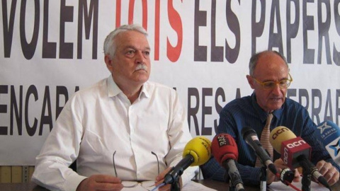 Els historiadors Toni Strubell i Josep Cruanyes en un acte reivindicatiu dels Papers de Salamanca. Europa Press