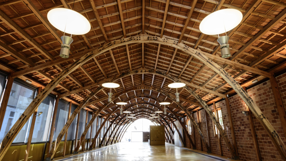 Coneguda avui com la Nau Gaudí i considerada el km. 0 de l'obra d'Antoni Gaudí, la Societat Cooperativa La Obrera Mataronesa la va dissenyar Gaudí el 1883. Va ser una cooperativa de producció dedicada al gènere de punt que va estar activa entre 1864 i 1890, sent una de les cooperatives més importants i influents del segle XIX a l'Estat. Gaudí va dissenyar l'estendard de la societat. Es tracta de la figura d'una abella, símbol de la laboriositat, que coronava l'ensenya i que es conserva al Museu de Mataró pel llegat de l'artista mataroní Jordi Arenas i Clavell.