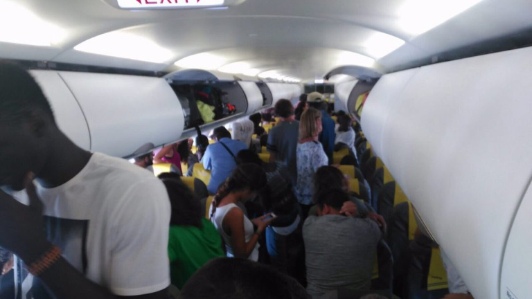Davant la seva protesta i la de moltes altres persones del mateix passatge, van veure com feien baixar a la persona emmanillada. Poc després tots van ser obligats a abandonar l'avió. "Molta gent estem dempeus parant aquest vol de la vergonya", deia un dels passatgers des de xarxes socials abans de baixar.