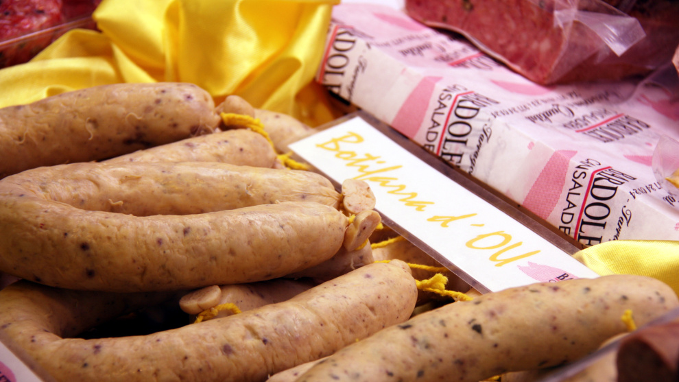 Botifarres d'ou al mostrador de la parada d'un mercat.Laia Poblado / ACN