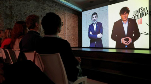 La videoconferència de retrobament de Jordi Sànchez i Carles Puigdemont. EFE / JMA