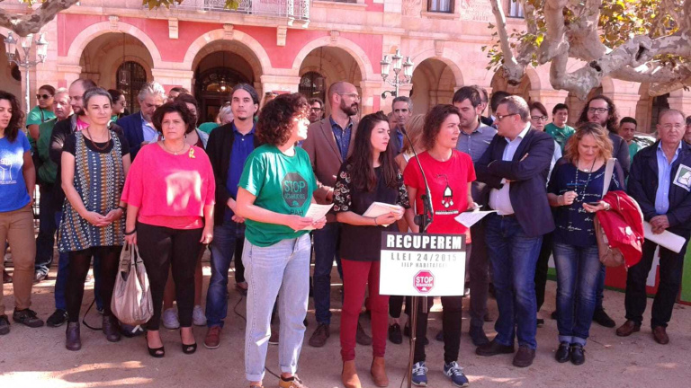 Els populars van portar al Constitucional aquesta mesura el maig de 2016, tot i que el mateix PP català l'hi havia donat suport al Parlament. En aquell moment, les entitats van aconseguir un compromís signat per part del grup socialista al Congrés amb el qual es comprometien a revocar el recurs en cas que arribessin al poder, fet que ha facilitat la negociació posterior. A finals de 2018, les entitats van convocar diverses protestes per demanar la recuperació de la llei amb el suport d'ajuntaments de diferent signe i moltes altres entitats del món municipal, com l'Associació Catalana de Municipis (ACM); l'independentisme, com a l'ANC o Òmnium Cultural; sindicats tals com CCOO i la UGT i altres organitzacions de caràcter social.