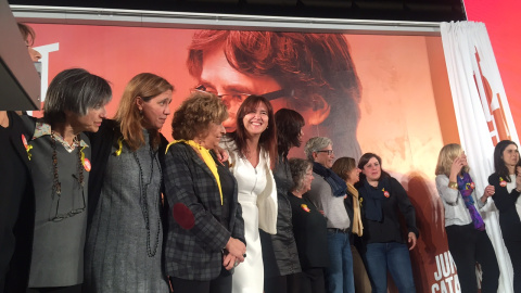 Foto de família de candidates de Junts per Catalunya, al final de l'acte d'inici de campanya d'aquest dilluns
