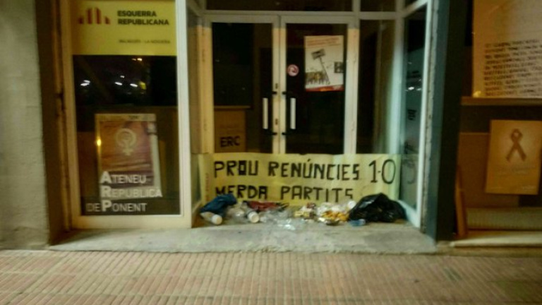 Els Comitès de Defensa de la República (CDR) han deixat durant la matinada d'aquest dilluns restes d'escombraries i excrements davant de les seus del PDeCAT i ERC en diversos municipis catalans per criticar les "renúncies" dels partits per fer efectiva la independència. En una publicació a Twitter, han acusat els partits del Govern de no estar treballant per la independència i li han recriminat la detenció durant la setmana passada de diversos activistes independentistes per part dels Mossos d'Esquadra. Els acusen de pertinença a grup criminal.