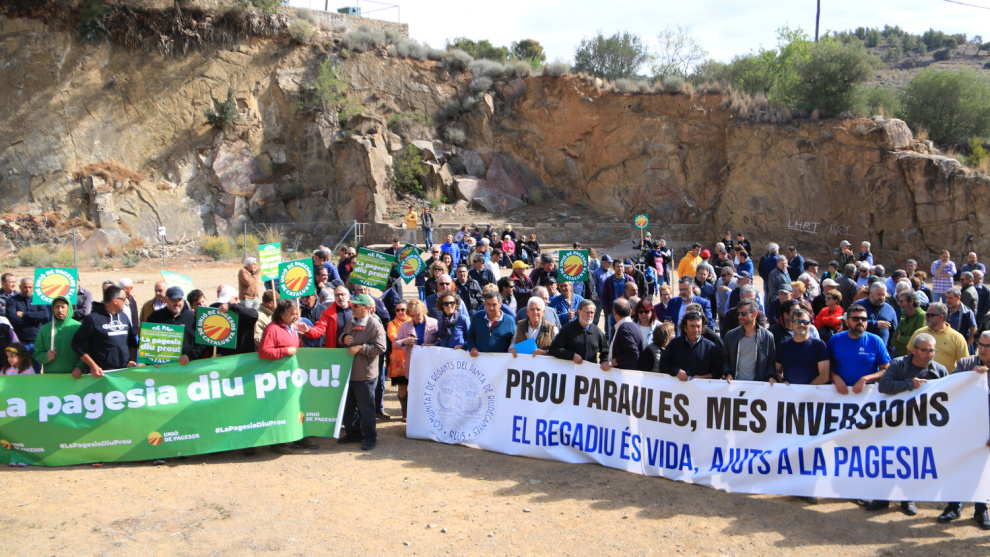 Sota els lemes 'Prou paraules, més inversions, el regadiu és vida, ajuts a la pagesia' i 'La pagesia diu prou', Unió de Pagesos i la Comunitat de Regants de Riudecanyes han encapçalat una concentració a tocar del pantà, on s'han reunit vora 200 persones. Aquesta és la primera campanya que els pagesos no tenen reg provinent de l'embassament de Riudecanyes, una situació que fa perillar cultius. Segons els agricultors, es veuran afectades 4.000 hectàrees de conreu, 3.000 de les quals són d'avellaner. "Si l'arbre és jove, el més segur és que es mori, i en cas de ser vell, s'assecaran moltes rames. Respecte l'oliver, pot provocar la pèrdua de la collita i que això repercuteixi a la següent campanya", ha apuntat Martí Macias, responsable de l'aigua al Tarragonès d'Unió de Pagesos.