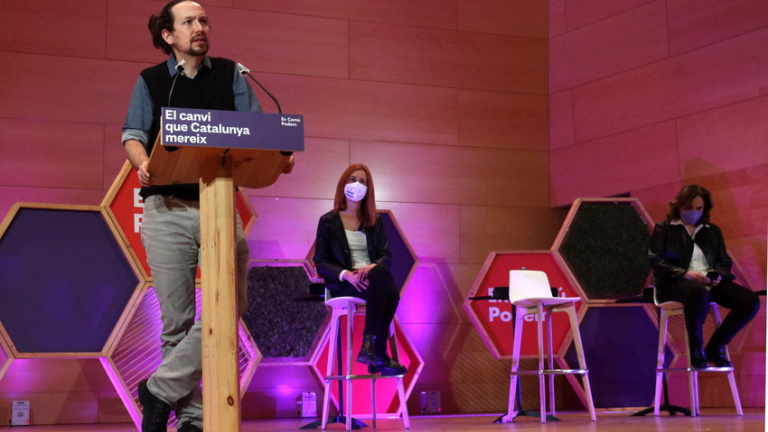 Si el cap de l'Executiu estatal ha tornar a participar en la campanya també ho ha fet el vicepresident Pablo Iglesias. El líder de Podem no s'ha prodigat en excés però aquest dissabte ha estat present en l'acte central d'En Comú Podem celebrat a Santa Coloma de Gramenet. La candidata Jéssica Albiach ha rebut també el suport de l'alcaldessa de Barcelona i cap de files de la formació, Ada Colau. La candidata d'En Comú Podem ha reivindicat el vot als comuns com "l'únic vot segur" el 14-F que pot portar "el canvi". Per la seva banda, Iglesias ha avisat que al govern de coalició de Podem i PSOE la seva "lleialtat" és "sempre" amb l'acord que fa possible la coalició. Ha fet al·lusió així a les discrepàncies amb el PSOE i ha remarcat que només gràcies a la presència de Podem al govern s'ha aconseguit coses "que semblaven impossibles". D'altra banda, i sense anomenar explícitament al líder del PSC, Salvador Illa, ha avisat que el candidat "dels grans poders mediàtics" no estarà "disposat" a posar en dubte els interessos econòmics. "La veritat és dura i hi haurà conseqüències sobre qui la diu, però dic la punyetera veritat", ha sentenciat.