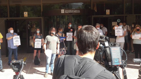 Els delegats sindicals es concentren davant del Departament per demanar més mesures de seguretat i avisen que estan consultant el professorat per anar a la vaga si el Govern no els escolta.