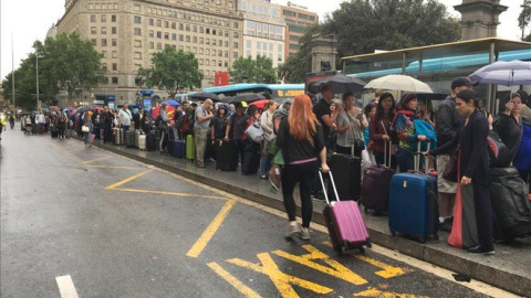 Una parada de taxi de Barcelona, sin ningún taxi ante la huelga de del sector contra la actividad de Uber y Cabify.