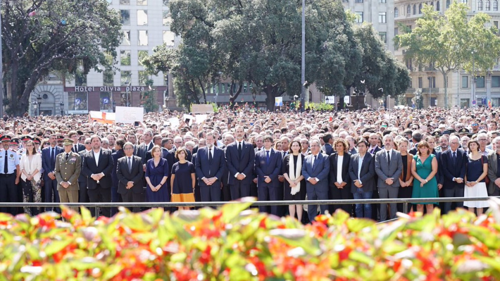 Milers i milers de persones s'han reunit a la plaça Catalunya de Barcelona per participar en el minut de silenci convocat per l'Ajuntament de la capital catalana en solidaritat amb les víctimes dels atemptats i de rebuig al terrorisme. A Cambrils i a moltes altres poblacions de Catalunya també s'han realitzat concentracions a les 12 del migdia per manifestar suport ciutadà a les persones que han patit els esdeveniments de violència d'aquest dijous. La xifra de víctimes mortals ha ascendit a 14 en morir una dona que es trobava en estat crític a l'Hospital Joan XXIII a Cambrils.