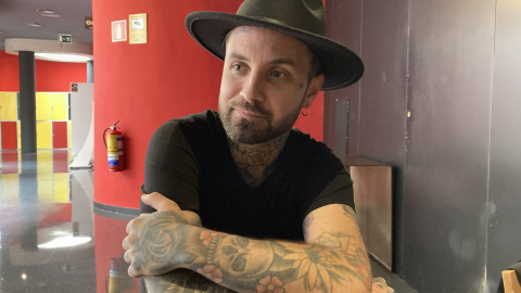 Abel Azcona en un moment de l'entrevista. L.P.