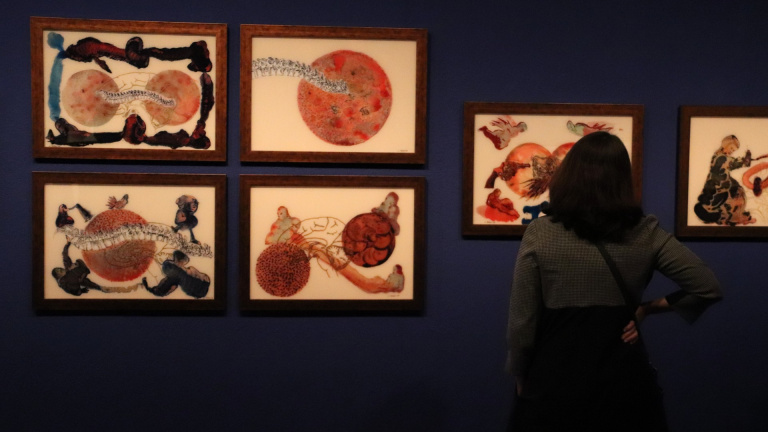 El muntatge comença amb dos formats d’obra molt característics de Nalini Malani: un teatre d’ombres i un dibuix mural efímer que s’esborrarà en una perfomance just abans que conclogui la mostra. L’exposició es pot visitar fins al 29 de novembre, però si no hi podeu anar, a la web de la Fundació Miró hi ha un munt d’informació i també a les xarxes socials de l’artista on des de 2017 fa animacions amb la seva tauleta i les comparteix amb els seus seguidors.