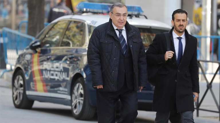 A l'esquerra,  l'excap de la Unitat Central de Suport Operatiu de la Policía Enrique García Castaño arriba a l'Audiència Nacional acompanyat pel seu advocat. (JUAN CARLOS HIDALGO | EFE)