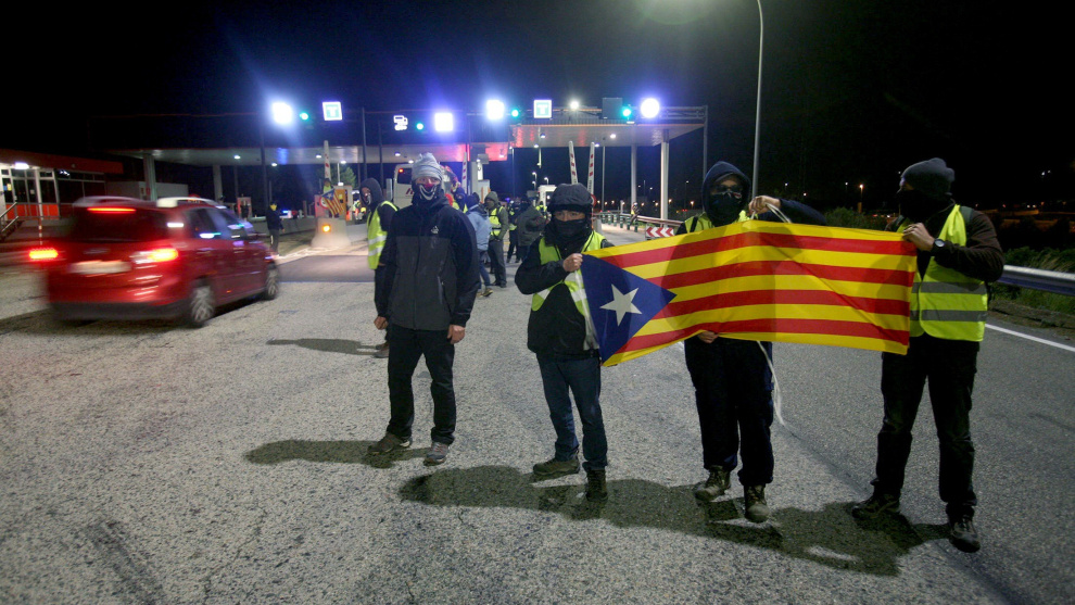 Un grupo de los Comités de Defensa de la República (CDR) levantan las barreras en la salida de la AP-7. / EFE
