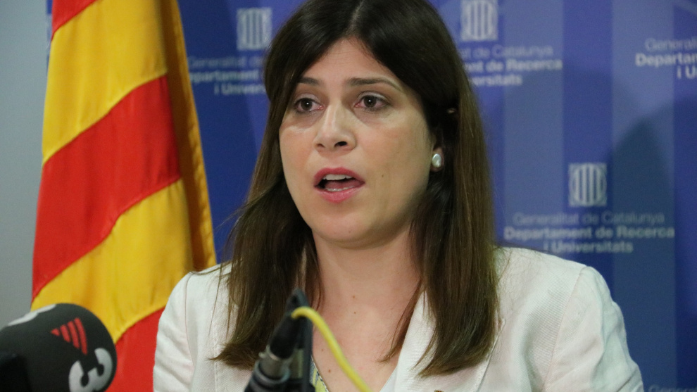 La consellera de Recerca i Universitats, Gemma Geis, a la compareixença d'aquest dilluns.