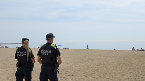 Dos agents de la Guàrdia Urbana de Barcelona patrullant a la platja