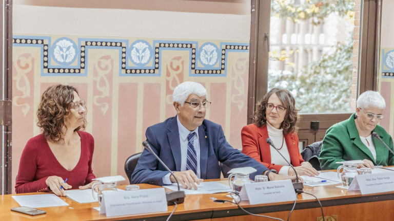 Imatge de la reunió del grup de treball, encapçalada pel conseller de Salut, Manel Balcells, i la consellera de Feminismes, Tània Verge.