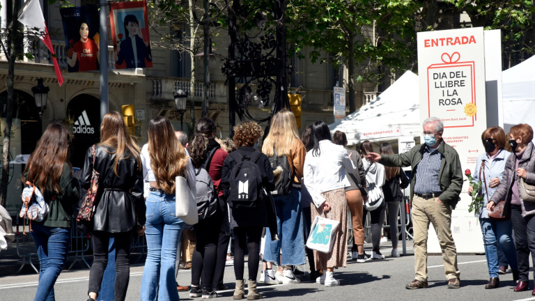 Els llibres inunden Passeig de Gràcia amb totes les mesures de seguretat, mentre que aquest any les roses s’han quedat a la part baixa de les Rambles amb les parades de tota la vida.