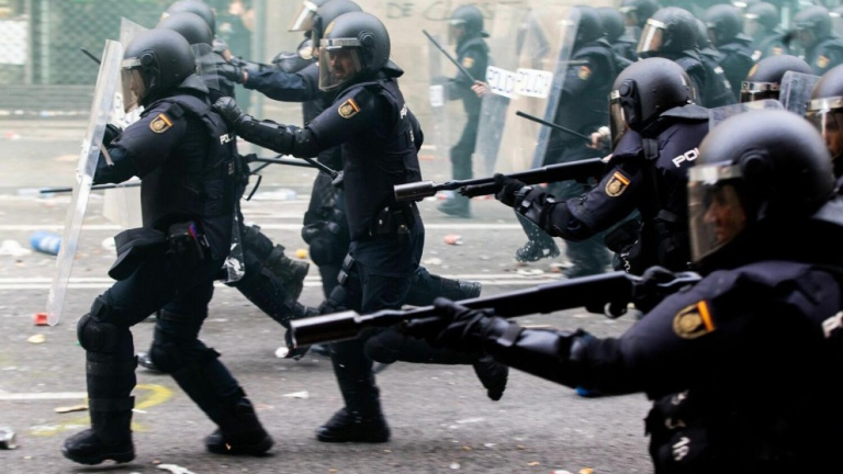 Antidisturbis de la Policia Nacional durant una càrrega contra les protestes per la sentència del judici a l'1-O. EFE