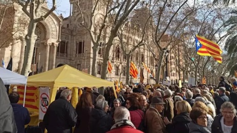 Centenars de persones, seguint la convocatòria de l’ANC i Òmnium Cultural, han reclamat avui dilluns davant del TSJC que l’Estat espanyol posi fi a la persecució judicial contra Oriol Junqueras i la resta de líders sobiranistes.