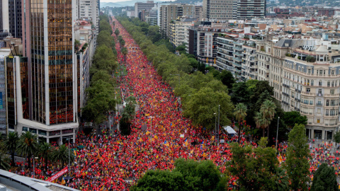 Un cop més, i en van set, l'11 de setembre, la Diada nacional de Catalunya, s'ha convertit en una enorme mobilització independentista. Tot i que fa alguns dies semblava que en aquesta ocasió el poder de convocatòria de l'ANC i Òmnium podria perdre força, la realitat ha superat les expectatives i centenars de milers de persones –un milió, segons la Guàrdia Urbana de Barcelona– han omplert la Diagonal. Durant uns minuts la principal avinguda de la capital s'ha transformat en una onada de color corall, gràcies a l'aclaparadora presència de les samarretes distribuïdes per l'ANC. La primera diada post referèndum de l'1 d'octubre, i també la primera amb presos i exiliats polítics i després de la fallida declaració d'independència, pretenia convertir-se en un clam a favor de la implementació de la República catalana, però en una jornada marcada per les absències ha estat precisament la reclamació de l'alliberament dels presos la que ha tingut més protagonisme.