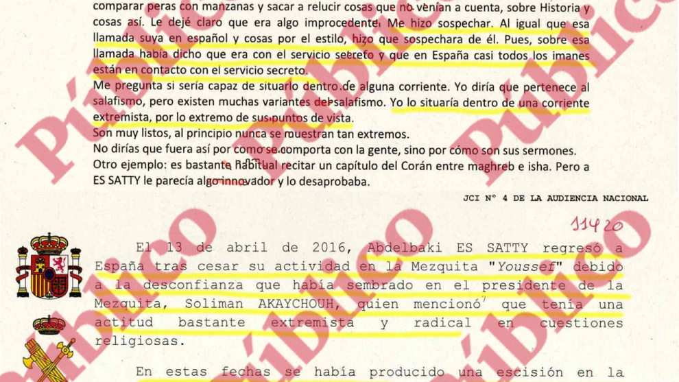 La declaració testifical del president de la mesquita belga en la qual l'imam de Ripoll va dirigir els resos abans de tornar a Espanya per preparar els atemptats del 17-A és molt més extensa, però aquests extractes deixen clar que les cinc línies que li dediquen els investigadors en el sumari, com a únic resum informatiu dirigit al jutge, no fan honor al contingut de les seves afirmacions.