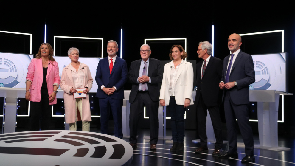 Colau centra les crítiques de tots els adversaris, Maragall se sitúa com alternativa, Collboni es desmarca de l'actual Govern municipal del PSC amb els comuns i Trias defuig les sigles de Junts i assegura que la seva victòria serà clara. Els previsibles pactes postelectorals també van protagonitzar el col·loqui d'alcaldables de RTVE