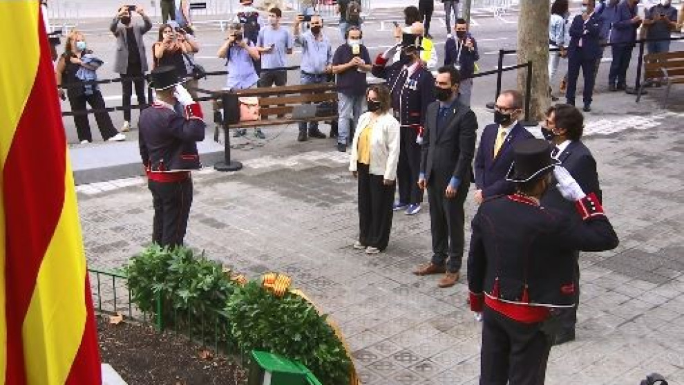 L'ofrena a Rafael Casanova sense públic marca el tret de sortida d'una Diada descafeïnada