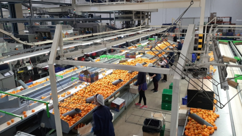 Una imatge de les encaixadores en una planta de processament de la taronja. Comité de Gestión de Cítricos