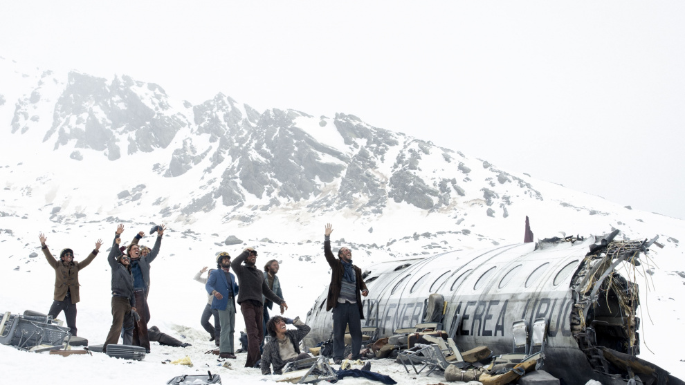 La sociedad de la nieve recrea el cas real dels supervivents de l'avió que es va estavellar als Andes els anys 70 i els acompanya durant els 72 dies de lluita per tornar a casa. Un "viatge a la foscor", com el defineix el mateix Bayona, que parla de l'ésser humà "des d'un lloc molt lluminós". El director torna a col·locar els seus protagonistes davant l'abisme de la mort, en una trama que se situa al valle de las Lágrimas, a la frontera entre Xile i Argentina, i que ha recreat entre Terrassa, Sierra Nevada i els mateixos Andes.