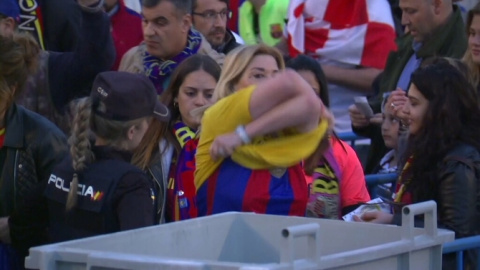 La gota que ha fet vessar el got han estat múltiples casos en què aficionats del Barça desplaçats a la final van veure com els requisaven no només banderes estelades –cosa que ja ha passat en altres finals, i també s'ha denunciat en el seu moment des del sobiranisme–, sinó també samarretes i bufandes de color groc. Unes intervencions dutes a terme pel personal de seguretat al Wanda Metropolitano, l'estadi de l'Atlético de Madrid on es va jugar el partit. Però també per agents de la Policia Nacional, als accessos a l'estadi i al centre de la capital espanyola. Les intervencions van arribar també a globus de color groc i fins i tot xiulets, segons han denunciat un bon nombre d'aficionats a les xarxes socials.