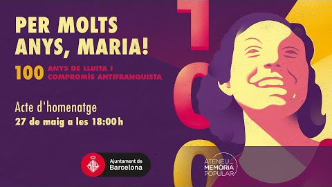 Maria Salvo Iborra (Sabadell 1920) ha fet 100 anys aquest dimecres. En aquest segle de vida ha patit la cruesa de l’exili, 16 anys de captiveri en diferents presons franquistes, un retorn complicat a la militància política, i ara una pandèmia global. Filla d’un fuster sindicalista i d’una portera que li va inculcar la importància de ser una dona independent, Maria Salvo ha dedicat la seva vida a lluitar, de vegades per sobreviure, però sempre per la justícia, la llibertat i la igualtat. Coincidint amb el seu segle de vida, l'Ateneu Memòria Popular i l'Ajuntament de Barcelona han organitzat un acte virtual que ha servit per homenatjar-la.