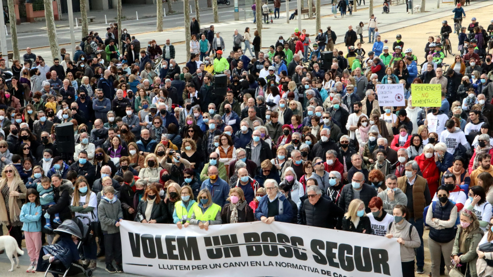 La marxa, que tenia per lema "Volem perdre'ns per la muntanya sense perdre la vida", estava encapçalada per una gran pancarta on s'hi llegia "Volem un bosc segur". Familiars del ciclista ferit han exigit a les administracions que implementin mesures com ara que es prohibeixin les batudes els caps de setmana o durant les vacances escolars i que, quan es facin, estiguin totalment perimetrades.