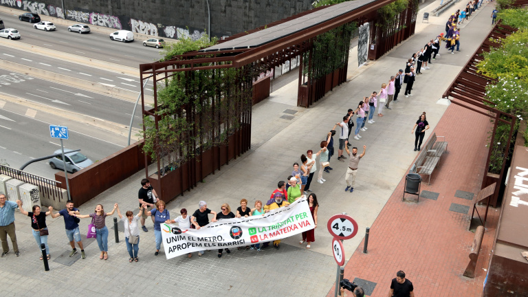 Més de 1.500 persones fan una cadena humana per reclamar la connexió en metro de les Trinitats a Barcelona