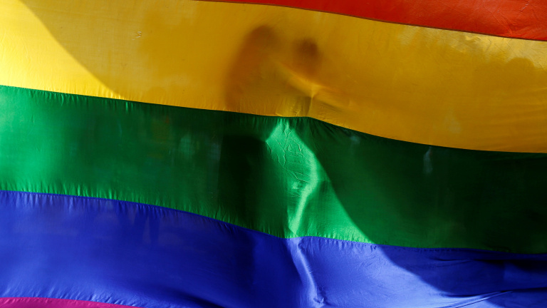 Dos persones s'abraçen darrera d'una bandera LGTBIQ+Danish Siddiqui / Reuters