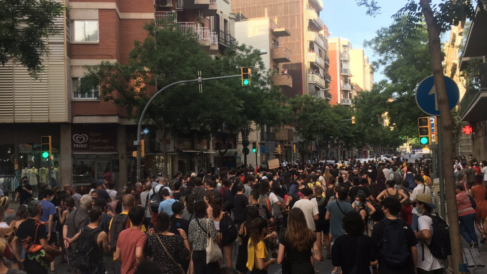 Un miler de persones es manifesten a Sants per condemnar la mort del veí que anava a ser desnonat