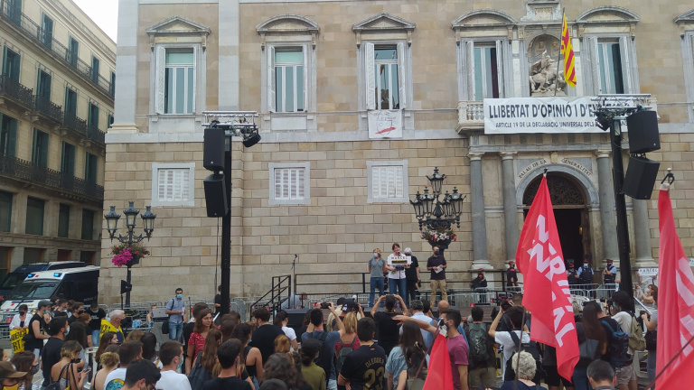 A la concentració central, que ha tingut lloc a la plaça Sant Jaume de Barcelona, hi han assitit un miler de persones. La plaça estava força plena abans de les vuit del vespre, on entre altres assistents hi havia els diputats de la CUP com Eulàlia Reguant i Xavier Pellicer, així com l'exconsellera i diputada d'ERC Meritxell Serret. Els cartells de "Marcel absolució" i banderes independentistes han omplert la plaça de la capital catalana. Quan ja han estat les vuit ha intervingut la presidenta de l'Assemblea, Elisenda Paluzie. "Davant els estats repressors tenim dues opcions: quedar-nos a casa i no fer res o bé seguir fent servir aquests drets i tornar als carrers!", ha reclamat. També ha parlat el vicepresident d'Òmnium Cultural, Marcel Mauri, qui ha assegurat que "el jovent d'aquest país és la llavor de la victòria, per això l'Estat Espanyol els persegueix i criminalitza".