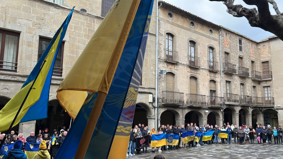 Barcelona, Girona o Guissona són algunes de les localitzats que han acollit actes coincidint amb el segon aniversari de l'inici de la guerra, que va esclatar arran de la invasió russa