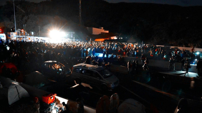Ambient festiu a l'autopista durant la major part de la jornada d'aquest dilluns. Vint i cinc persones garanteixen l'alimentació dels participants a la protesta dels independentistes contra la repressió de l'Estat.