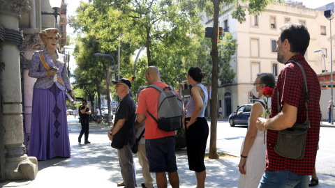Ja abans de les 11 del matí, quan estava prevista l'obertura de la capella ardent, desenes de persones esperaven a les portes de la seu del districte, al costat de la geganta Núria Feliu, iniciativa de la pròpia artista quan va celebrar els 70 anys i els 50 de professió.