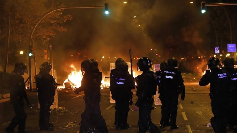 Grups de joves s'enfronten amb la policia espanyola i els Mossos d'Esquadra, tornen a calar foc a contenidors, cremen vehicles i aixequen barricades a la dreta de l'Eixample. El president de la Generalitat compareix passada la mitja nit per exigir que s'aturin immediatament els episodis de violència.