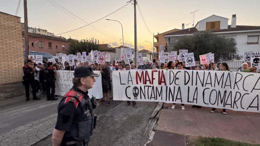 A l'exterior del recinte, un centenar de persones convocades per la plataforma Pobles Vius, contrària al projecte, es va concentrar amb lemes com "fora especuladors de les nostres terres" i "stop biogàs". Un ampli cordó policial dels Mossos d'Esquadra va impedir als manifestants accedir a l'acte. "No es veia aquesta imatge des de l'1 d'octubre de 2017, quan la Guàrdia Civil va sortir a requisar urnes del referèndum", explica el pagès Gerard Batalla, veí del poble i membre de la plataforma. "No és la primera vegada —diu— que els identifiquen fins i tot en concentracions legals. Però mai havien vist una operació d'aquest abast per protegir un projecte empresarial encara sense permisos", lamenta.